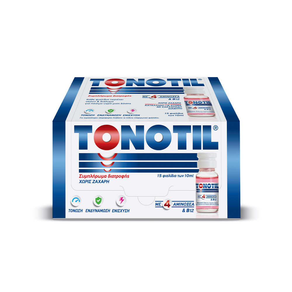 To Τonotil αποτελεί μια φόρμουλα με 4 αμινοξέα και βιταμίνη B12 που βοηθά να αντιμετωπιστεί καλύτερα το αίσθημα κόπωσης, σωματικής και νοητικής.